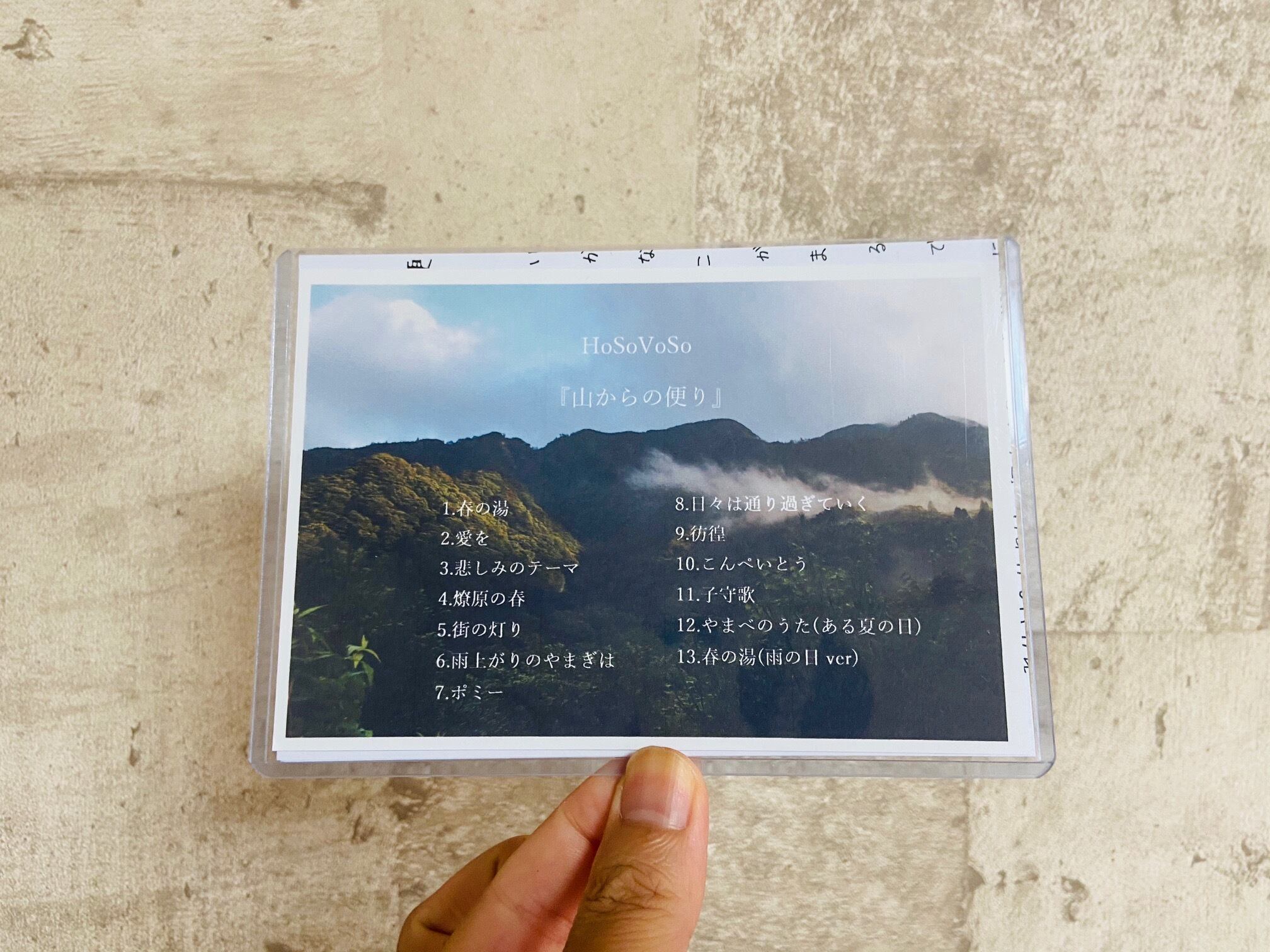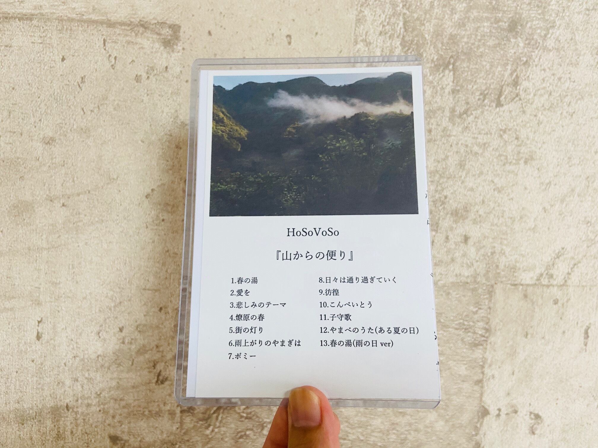 ※DL用URL付きポストカードとCDRのセットになります。 ※デザインは2種類、音源内容は変わりません。 (選べません。ランダムでの発送となります。) 収録曲 1.春の湯 2.愛を 3.悲しみのテーマ 4.燎原の春 5.街の灯り 6.雨上がりのやまぎは 7.ポミー 8.日々は通り過ぎていく 9.彷徨 10.こんぺいとう 11.子守歌 12.やまべのうた(ある夏の日) 13.春の湯(雨の日ver)