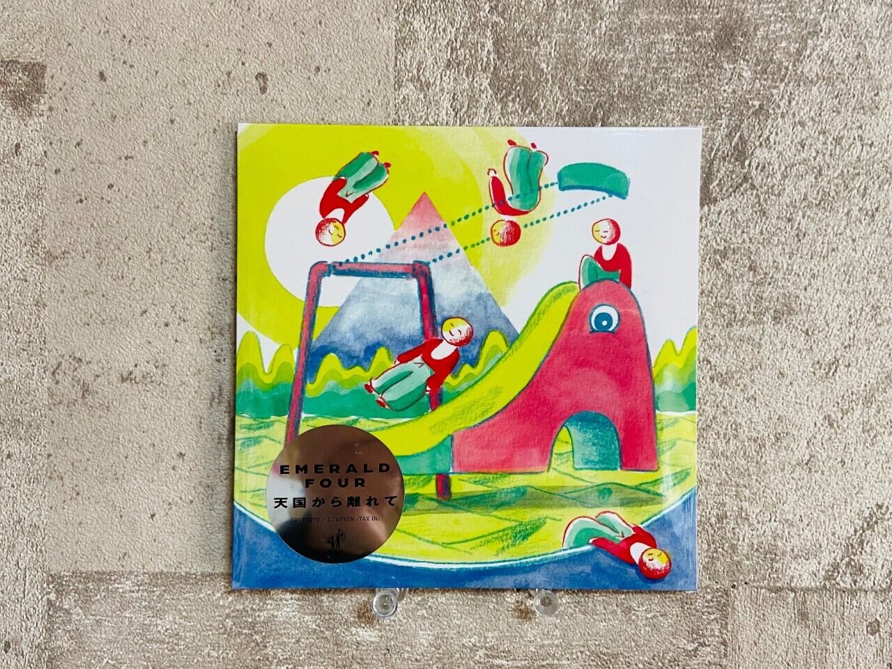 足立大輔を中心にした京都発5人組音楽グループEMERALD FOUR、最新アルバム「天国から離れて」をCDリリース。前ボーカル脱退後、Vo ぱる(象の背)、Ba 有泉慧(本日休演)、Key ハイジ、Dr 武田啓希といった新たなメンバーが参加して宅録で作られた本作は、コロナ禍によって世界や日常が大きく変わる中で「過ぎ去った時代に対するノスタルジーと新しい時代に対する喜び」をテーマに制作されたポップソング・アルバム。